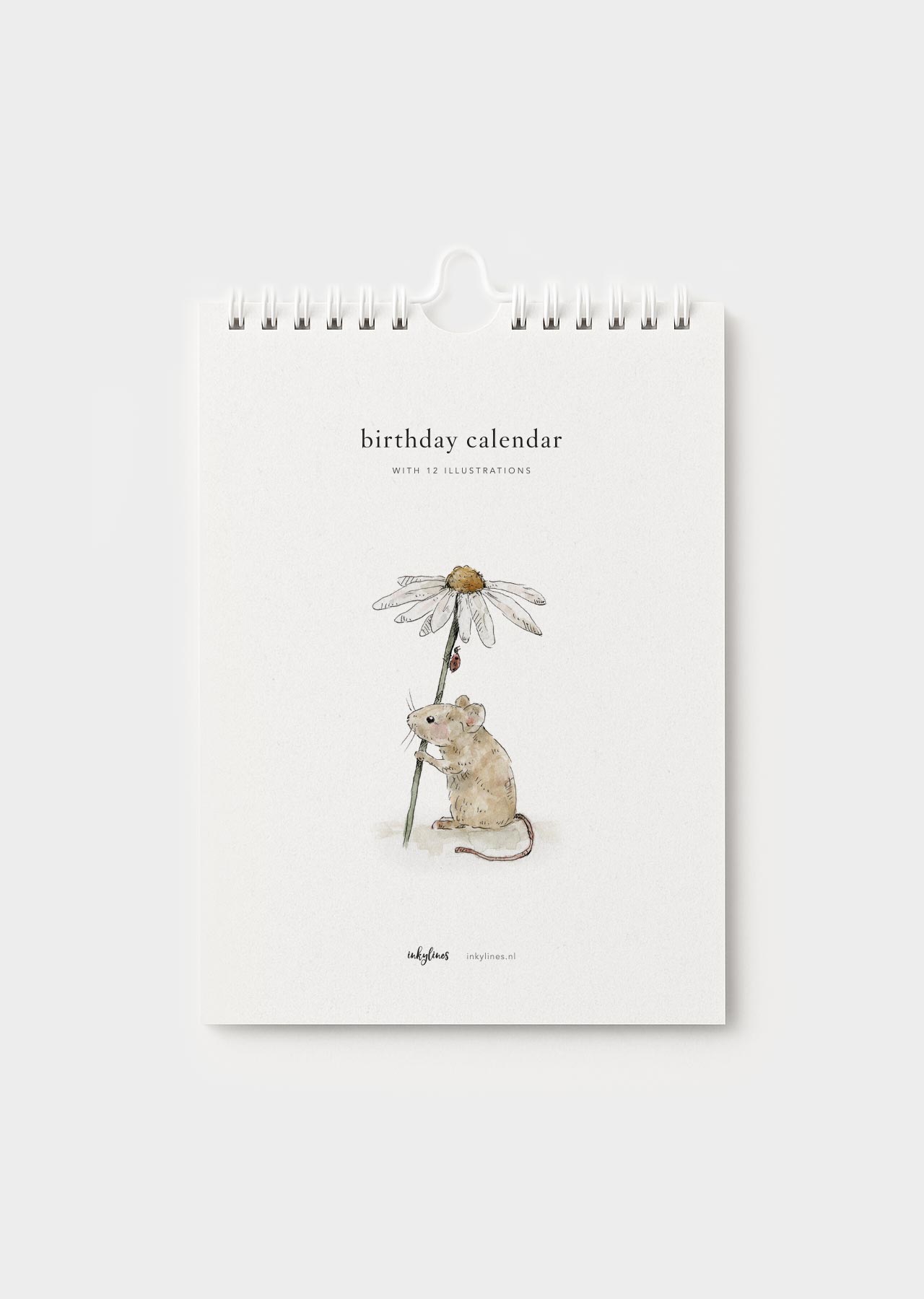 Vergeet nooit meer een verjaardag of belangrijke datum met deze verjaardagskalender in A5 formaat! Elke maand bevat een unieke illustratie, met de hand getekend met aquarel en fineliner. Met een witte spiraalbinding en een haakje om op te hangen.